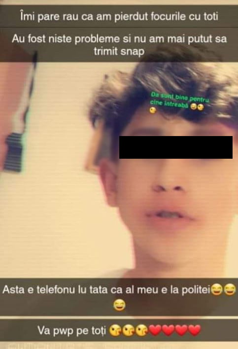 În timp ce agresorul se afla în arest la domiciliu, a postat un mesaj pe Facebook. „Îmi pare rău că am pierdut focurile cu toţi. Au fost nişte probleme şi nu am putut să dau snap. Asta e telefonu lu tata că al meu e la poliţei Va pwp pe toţi“, a scris agresorul pe pagina de Facebook.