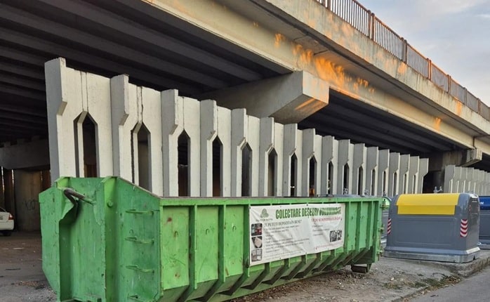 Container pentru deșeuri voluminoase amplasat temporar pe bulevardul IC Brătianu din Constanța