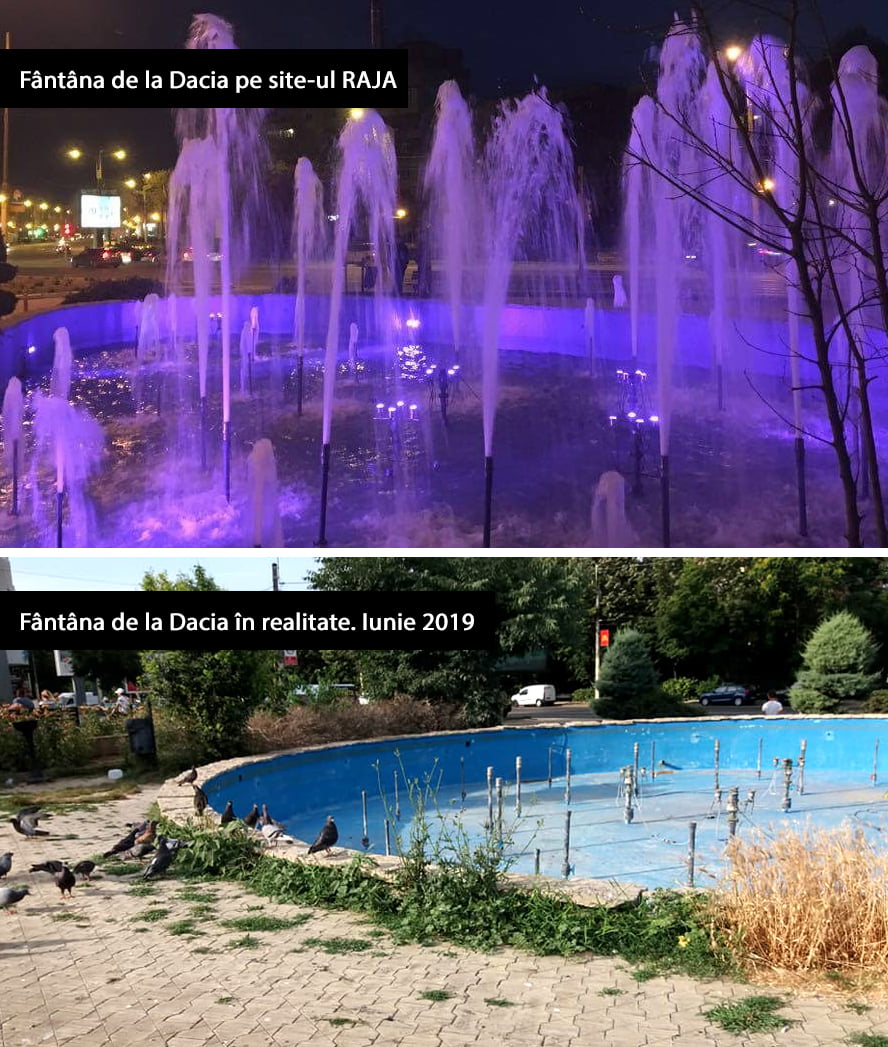 Cu toate acestea, pe site-ul RAJA, fântâna de la Dacia apare ca fiind funcțională și chiar ne este prezentată o fotografie de pe vremea când aceasta delecta trecătorii cu jeturi de apă frumos luminate.