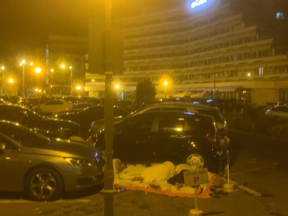 Însă, se pare, că o familie, doi adulți și un copil, nu a aflat acest lucru și odată ajunsă la mare nu a avut încotro decât să doarmă în parcarea hotelului. Și-au întins o pătură pe jos, s-au descălțat și s-au culcat.
