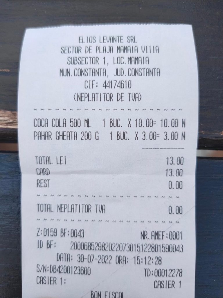 Chiar în acest weekend, rețelele de socializare au vuit de fotografii cu bonuri fiscale de la un beach-bar din Mamaia care a luat bani clienților inclusiv pentru gheața din pahar.