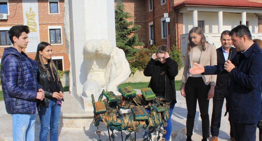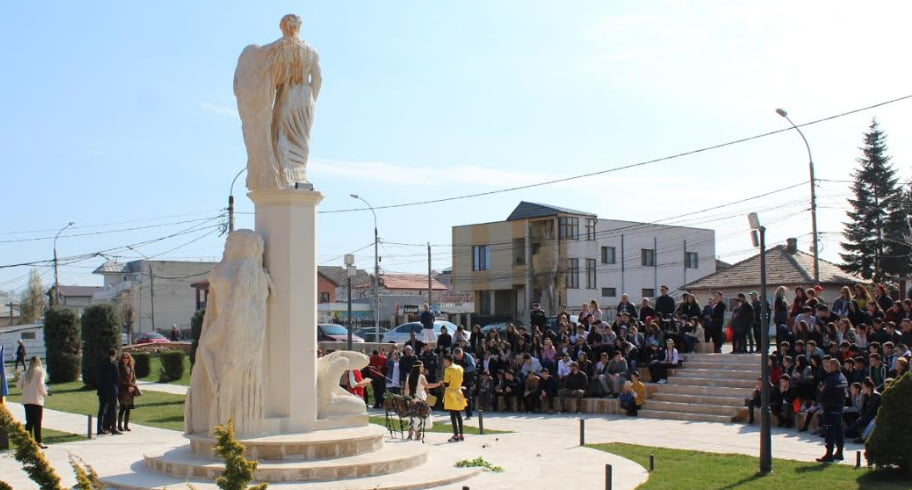 Primarul George Scupra a explicat semnificația ansamblui statuar „Geneza“ , „Metamorfoza“ și „Iubirea“ și, împreună cu elevii Liceului Tehnologic ,,Ion Podaru’’, a depus o coroană simbolică, prelucrată manual de aceștia pe care au descris-o ca fiind ,,o coroană a exilului – motivele exilului sunt învăluite în mister și se concretizează într-o compoziție cromatică, detaliată prin patina timpului, realizată din cupru pe elemente cum ar fi toga romană și cărțile scrise în exil’’.