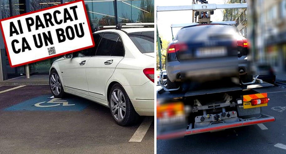Nesimțirea a fost taxată. Mașini parcate pe locuri pentru persoane cu handicap, ridicate de Poliția Locală
