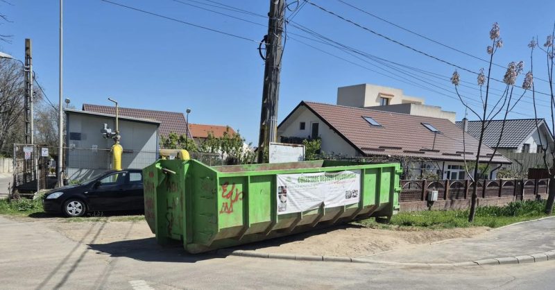 Container pentru deșeuri voluminoase amplasat temporar pe bulevardul IC Brătianu din Constanța