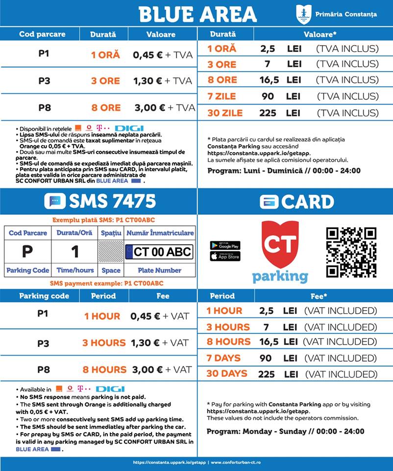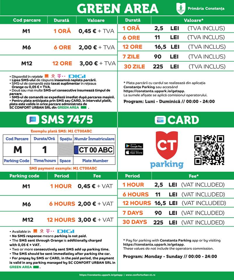 Potrivit anunțului publicat de reprezentanții Primăriei, Constanța Parking este noul sistem de plată a parcării prin SMS ce va fi implementat începând cu data de 15 aprilie 2019.