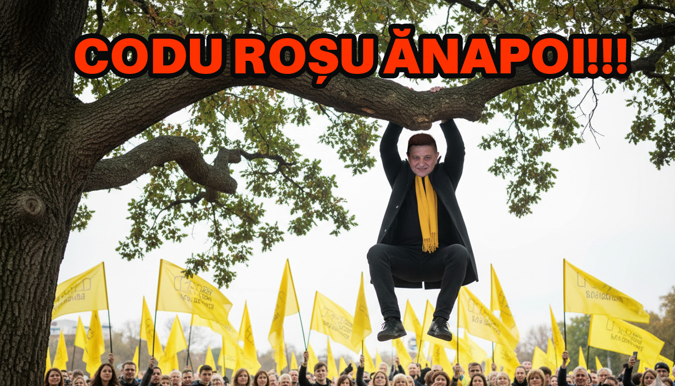 Liderul de galerie AUR Constanța, Ovidiu Cupșa, a dus protestul la un alt nivel. Cupșa s-a agățat de creanga unui copac de unde spune că nu se va mai da jos până când constănțenii nu primesc codul roșu promis. „Stau aici să atârn până când oamenilor li se va da codul roșu înapoi! Am mai atârnat la viața mea, nu e o problemă. Atârn și acum pentru patrie și un cod roșu cinstit!“, a urlat Cupșa în aplauzele îngrijorător de sincere ale celor prezenți.