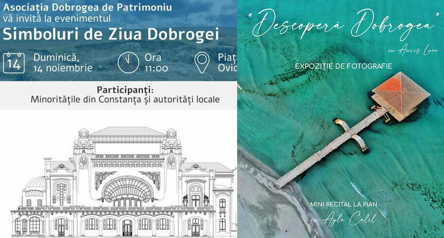 În această duminică, 14 noiembrie, constănțenii sunt așteptați în Piața Ovidiu, unde va fi organizat un eveniment special, dedicat promovării patrimoniul material al orașului. De asemenea, de la ora 16.00, puteți vizita expoziția fotografică „Descoperă Dobrogea“.