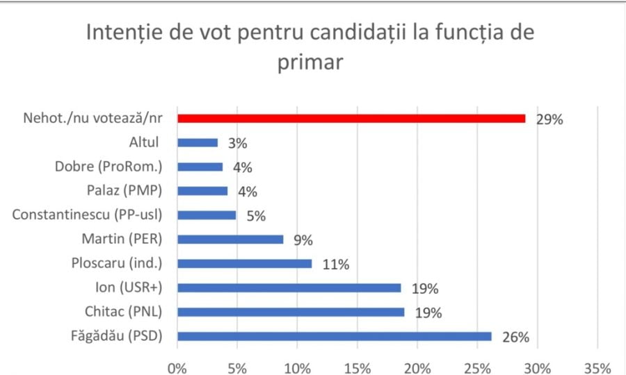 De asemenea, 29% dintre respondenți au declarat că sunt nehotărâți sau nu votează!