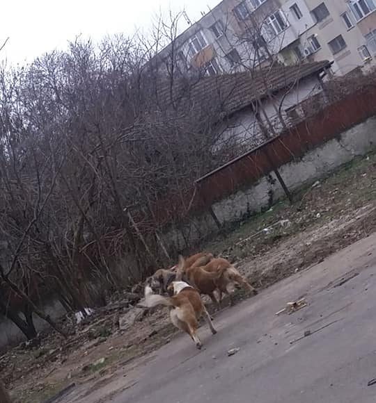 „Vor ajunge să ne mănânce copiii!“. Haită de maidanezi, fotografiată în apropierea unei şcoli din Constanţa
