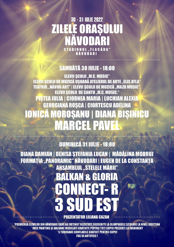În weekendul 30-31 iulie, Primăria Năvodari organizează pe stadionul Flacăra evenimentul Zilele Orașului.